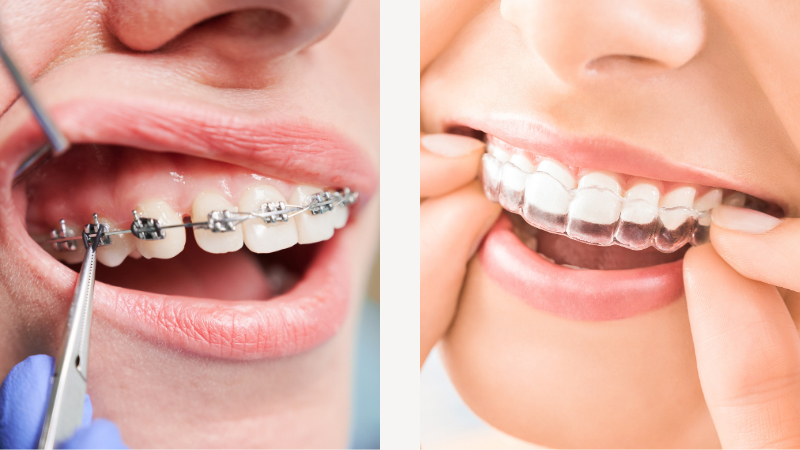 歯にブラケットと呼ばれる装置とワイヤーをつけて、歯やあごの骨に力をかけながら歯を動かし、歯並びを整えていく歯列矯正です。