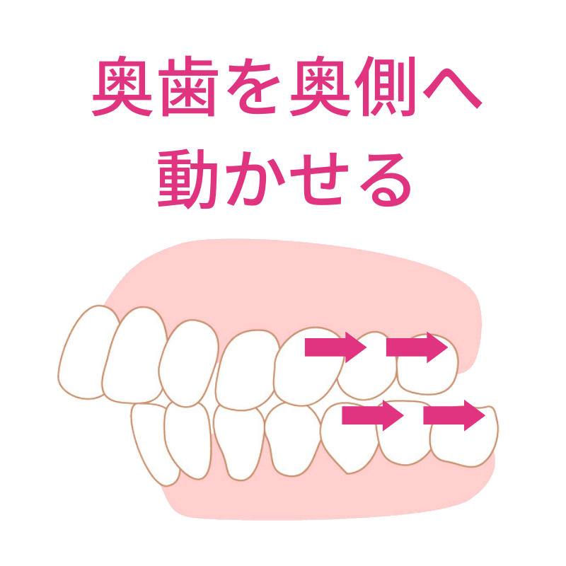 その点インビザラインなら、奥歯を削ることなく、奥歯を押し込んで(圧下)、開咬を治療することができるのです。