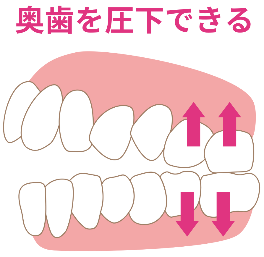 奥歯を削れる量には限界があるので、多くの場合で圧下による治療が行われます。