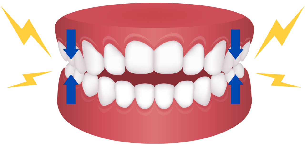 開咬の人は、前歯が使えない分、奥歯だけで噛み続けることになります。本来なら前歯と分散するはずの力が、奥歯に集中し続けるのです。