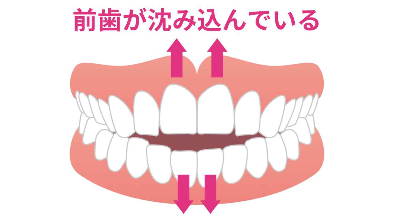 爪を噛む癖のある人、子供の頃に指しゃぶりの癖があった人は、前歯が顎の骨の中に沈み込んでしまい、上下の隙間が空いてしまうことあります。