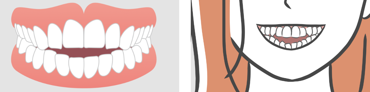 前歯を舌で押し出す癖がある人や、子供の頃に指しゃぶりの癖があった人は、前歯が外側に斜めに傾いてしまうことがあります。