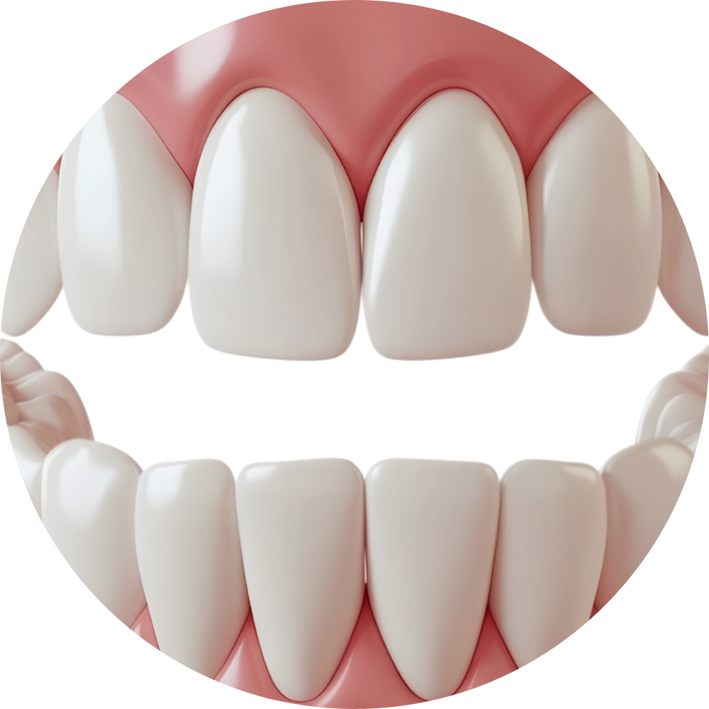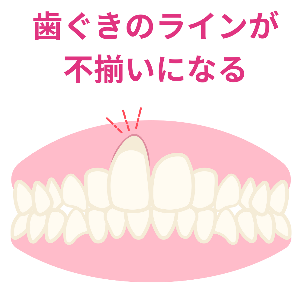 この状態では、たしかに上下の隙間は埋まるかもしれませんが、歯ぐきのライン(ガムライン)がガタガタになり、非常に不自然な見た目になってしまいます。